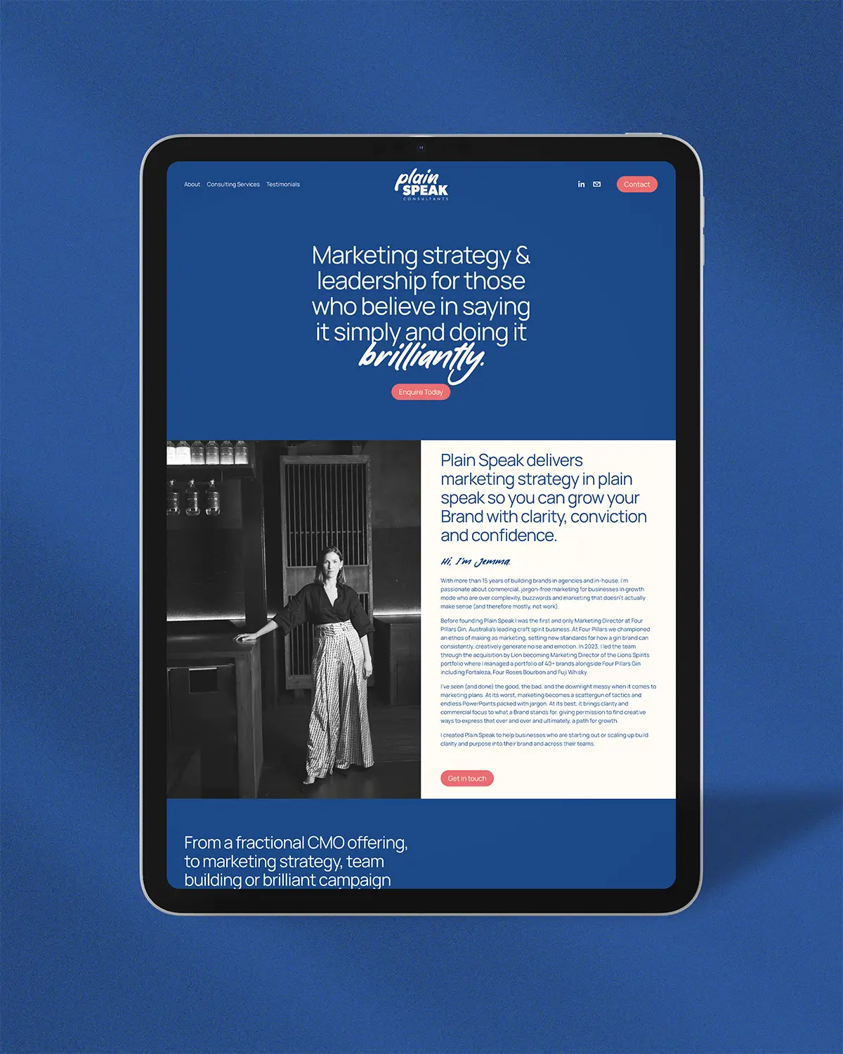 Plain Speak Consulting needed a clear and professional online presence that reflected Jemma’s expertise while staying true to her straightforward, no-nonsense approach. As a service-based business built on trust and clarity, it was important that potential clients could quickly understand what she offers and feel confident reaching out.