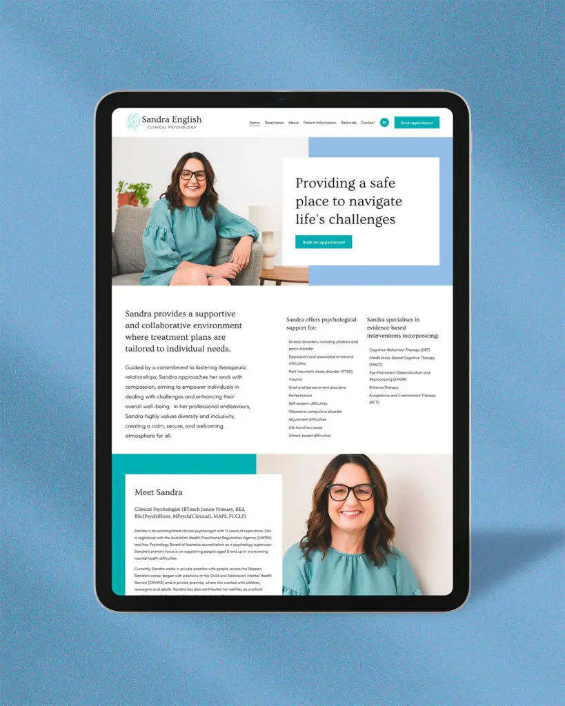 I design websites for health and wellbeing providers that feel calm, professional, and easy to navigate; helping patients understand your services, trust your expertise, and confidently book an appointment.